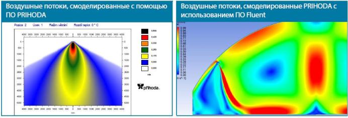 Примеры диаграмм распределения воздушного потока, созданных расчетной программой PRIHODA.