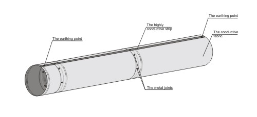 Антистатическая обработка предназначена для использования в помещениях, где возникновение статического электричества между тканевым воздуховодом и землей должно быть предотвращено.