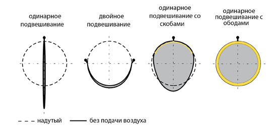 Компания PRIHODA разработала специальную конструкцию, которая позволяет использовать прямоугольную форму сечения, образующуюся за счет растяжения ткани в поперечном и продольном направлениях с помощью специальной натяжной системы. Такая конструкция легко монтируется и демонтируется. Монтаж такой системы может осуществляться непосредственно под потолком или на некотором расстоянии от него.